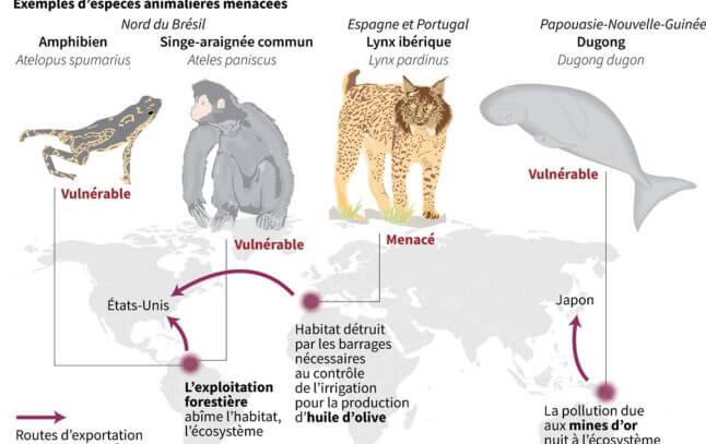 Les deux scientifiques se sont focalisés sur 7000 espèces particulièrement vulnérables. Ils ont en parallèle étudié le parcours d’importation des produits aux États-Unis, en Chine, dans l’Union Européenne et au Japon.