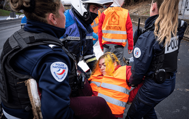 "Ça fait 10 ans que je fais de l’activisme et l’escalade de la violence ces derniers temps contre les militants écologistes est insupportable", témoigne dans un communiqué Damien, membre d’Alternatiba présent lors d’une action de blocage en amont de l’assemblée générale de Total.