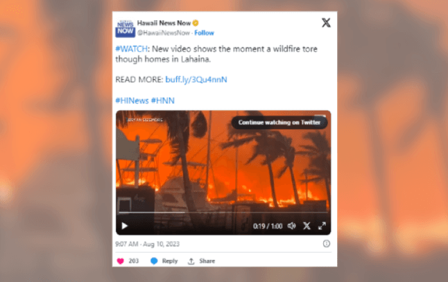 Hawaii on fire: people rush into the water to seek safety from the fires. Fires in Hawaii, fanned by high winds, have burned many buildings around Maui, including the historic town of Lahaina. In several communities, they closed schools and evacuated people. And some local… pic.twitter.com/AFirl2ozuX