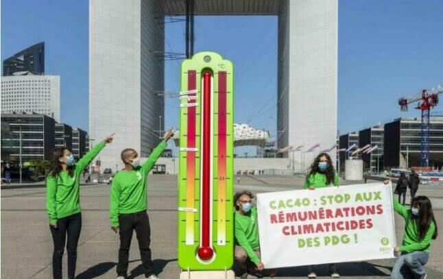 Si treize entreprises du CAC 40 font figure de bons élèves en indexant une partie de la rémunération de leur PDG à un objectif climatique dédié (comme la réduction des émissions de CO2), ces objectifs représentent en moyenne à peine plus de 3,5 % de leur rémunération. Il s’agit d’Alstom, BNP Paribas, Capgemini, Carrefour, Danone, Hermès, Stellantis, Saint-Gobain, Schneider Electric, Société Générale, Total, Veolia et Vinci.