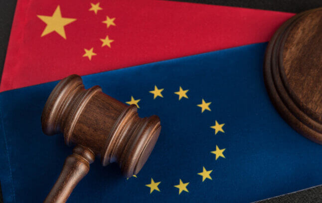 L’Union européenne a imposé pour la première fois des sanctions en mars contre la Chine : elle a interdit à quatre dirigeants chinois de la région du Xinjiang de se rendre au sein de l’Union européenne et a gelé des avoirs (fonds et ressources économiques) détenus sur dans l’Union.