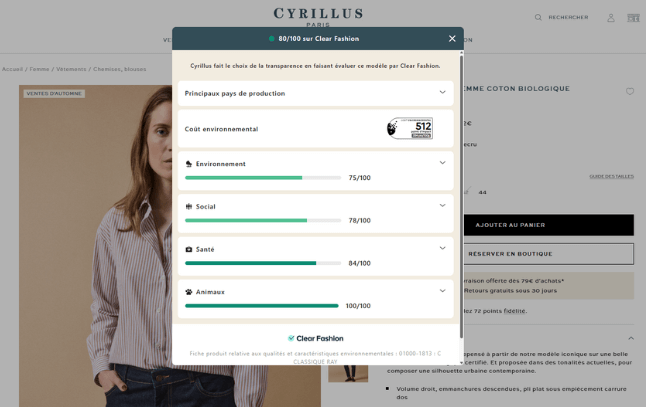 A ce jour, plus de 100 000 produits bénéficient d’une évaluation ,estime Clear Fashion, start-up à l’origine du “Yuka de la mode”. Certaines enseignes, déjà engagées dans une démarche de durabilité, ont en effet pris le train en marche bien avant la publication du décret. “Ce dispositif nous sert à éveiller le client sur l’impact environnemental et social vertueux qu’il a quand il privilégie des marques locales”, affirme à Novethic Thomas Huriez président de la marque de jeans responsable, 1083.